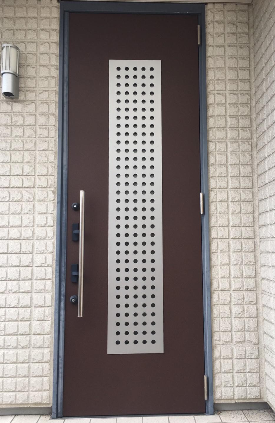玄関ドアは交換せずにブルーのドアから赤い色のドアにシートを貼ってリフォーム完了です。古く色褪せた玄関ドアのリフォームだけではなく、玄関ドアの色を変えたい等のご要望にお応えできます。